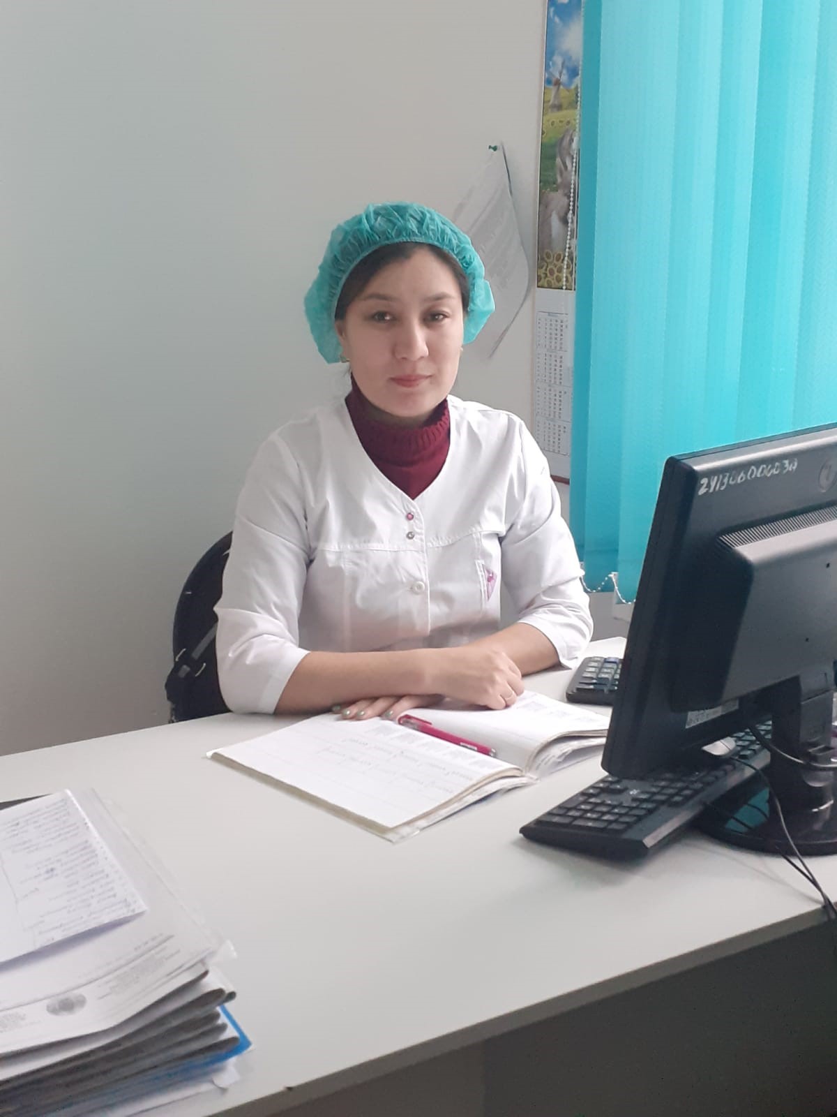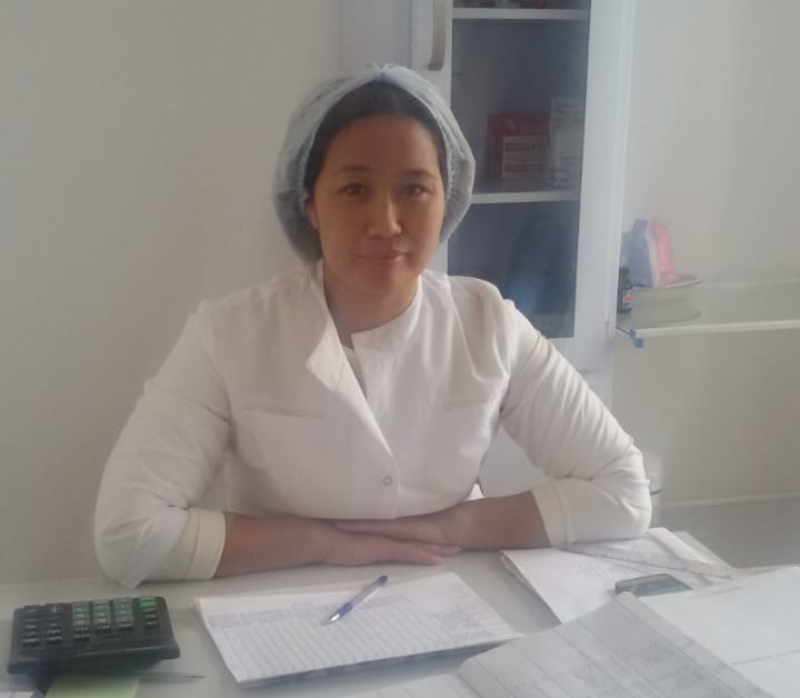Мейірбике –Ғинаятова Гүлдана Шалқаровна, білімі арнаулы орта, 2013жылы Атырау медицина колледжін бітірген, жәй санатты, жалпы еңбек өтілі – 9 жыл, осы мекемеде -4 жыл .