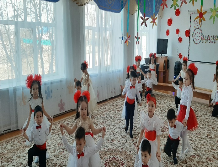 2020 жыл 6 наурызда 8 наурыз халықаралық әйелдер күніне тәрбиешілер арасында мерекелік сайыс өтті. Тәрбиешілерді «Қызғалдақ», «Бәйшешек» атты екі топқа бөлу арқылы жарыс ұйымдастырылды.Сайысты жоғары деңгейде өткізіп, салт-дәстүрді толық дәріптегенді, ізеттілікті, шеберлікті, сұлулықты, тәрбиешілер арасындағы татулық пен достықты көре білдік.