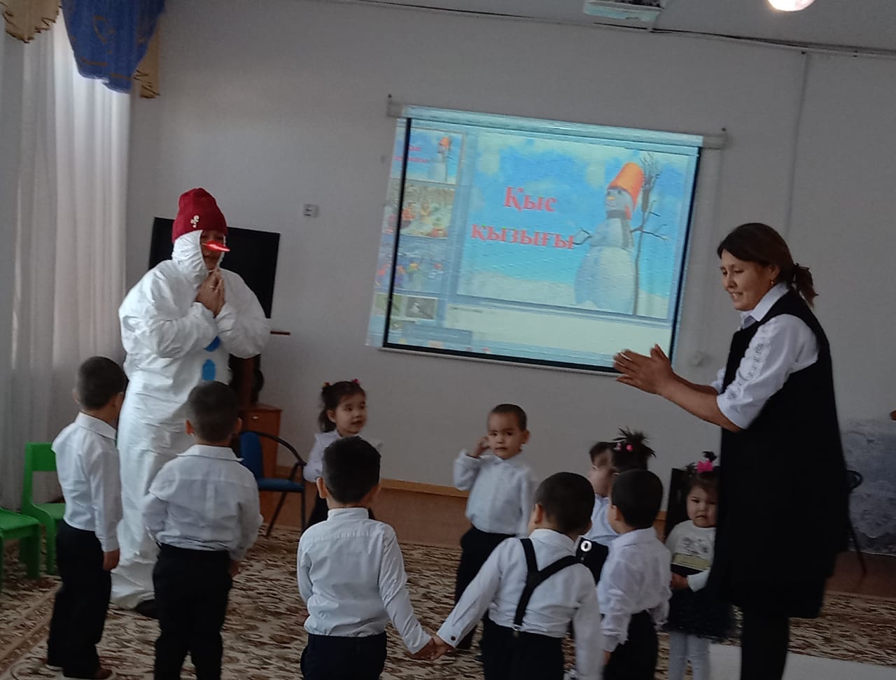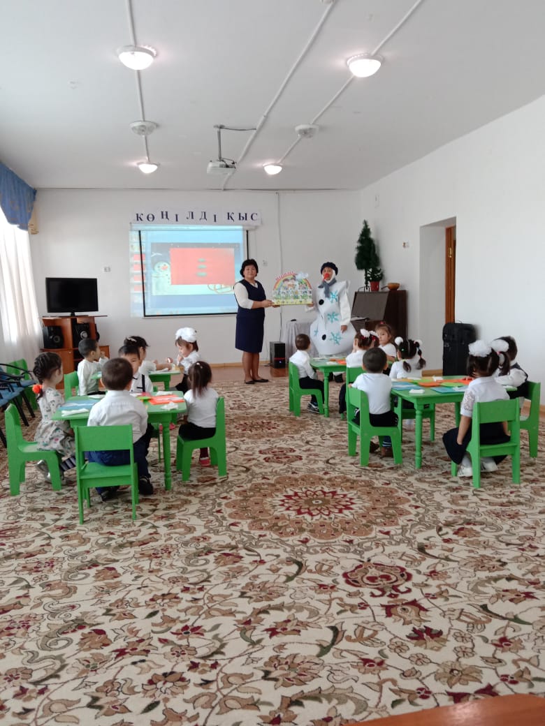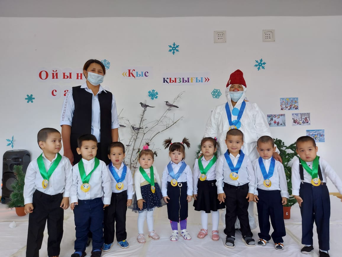 «Сылдырмақ» тобының қатысуымен «Қыс қызығы» атты ойын-сауық өтті.Ойын сауық барысында балалар қыс мезгілі туралы сұрақ-жауап алып,балалардың жыл бойы үйренгендерін еске түсіріп, жаттаған тақпақтары айтылады.